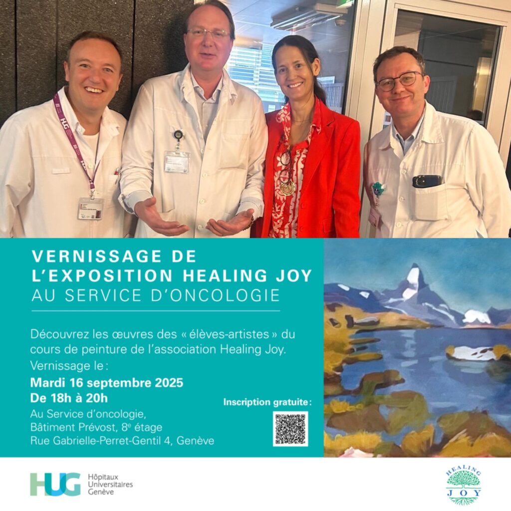 Healing Joy accueillie aux Hôpitaux Universitaires de Genève (HUG) Un immense merci aux HUG – Hôpitaux Universitaires de Genève et à l’équipe d’oncologie d’avoir permis aux élèves du groupe de peinture d’exposer leurs œuvres dans les salles d’attente, les bureaux et les couloirs du service d’oncologie. Cette collaboration exceptionnelle a été initiée par le Professeur […]